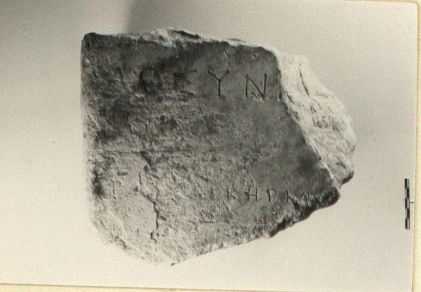 | Description: | Inscribed fragment. Fragment of a large block. Broken all around. Pentelic marble. | |