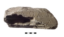 | Description: | Inscribed fragment. Inscribed face and bottom surface, dressed for setting on a block below. Hymettian marble. | |