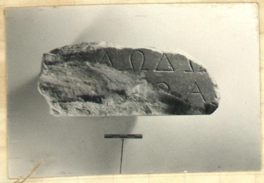 | Description: | Inscribed fragment. Inscribed face and bottom surface, dressed for setting on a block below. Hymettian marble. | |