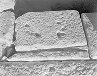 | Dimensions: | H. 1.24, (top front to back) 0.56, (from side to side) 0.87, (of top mouldings) 0.18, (of plain face of die) 0.785, (bottom moulding) 0.30; W. (of die at top) 0.785; Diam. (of round bedding) 0.03; L. (of left foot print) 0.29 | |