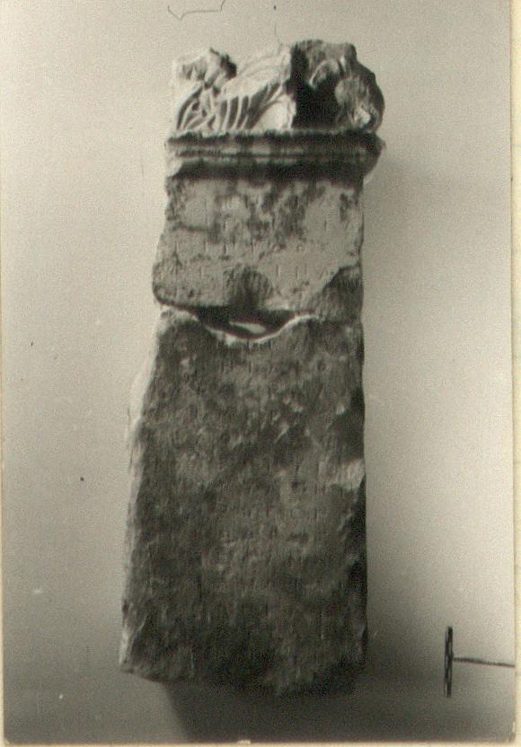 From the upper right corner of a stele with part of palmette ornament above.