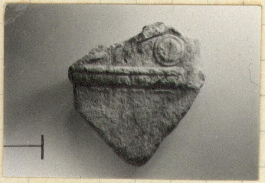 | Description: | Inscribed fragment. Upper left portion of a stele with pedimental top. A shield at the center of the pediment. Back rough picked. The marble is very flaky, and much of the inscribed surface is gone. Pentelic marble. | |