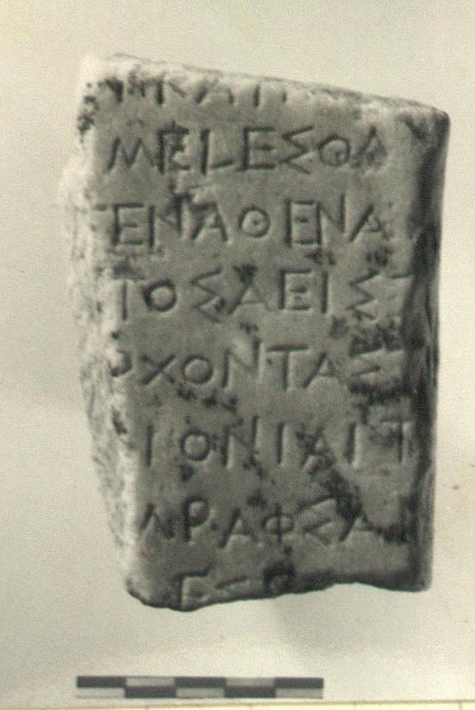 | Description: | Inscribed fragment. Part of right edge preserved; otherwise broken. Pentelic marble. | |