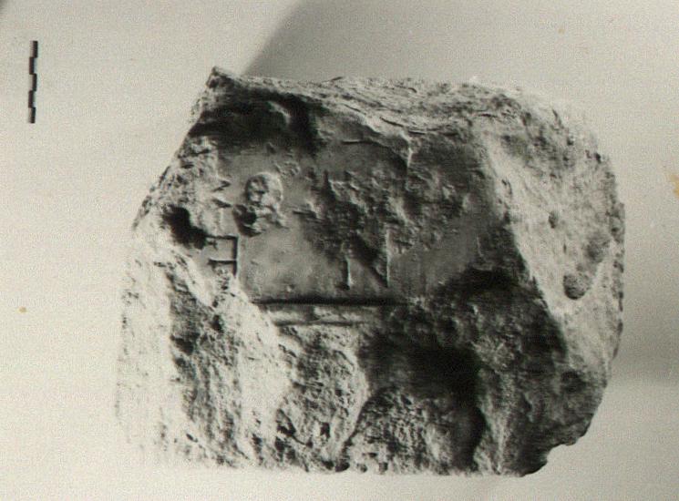 | Description: | Inscribed fragment. Broken right, left, below and behind. In top near left edge a cutting for a clamp. In the top, toward the present back and right edge, a vertical slot as though for a lewis. The inscribed face was crowned by a moulding of which only a narrow fillet remains at the bottom. | |