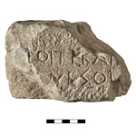 | Description: | Inscribed fragment. Broken on all sides except the bottom. Possibly part of the top surface preserved, with a pivot hole of later use. Two lines of the inscription preserved. Pentelic marble. | |