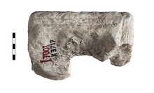 | Description: | Inscribed fragment of statue base. Moulding on bottom indicates that it was top of pedestal statue base. Inscribed face shows that this is the left portion. Reverse and top are rough picked. Upper lines of the inscription badly eroded; non-stoichedon. Letter spacing: 0.009m. Stone is smooth on inscribed and left sides. White marble. | |