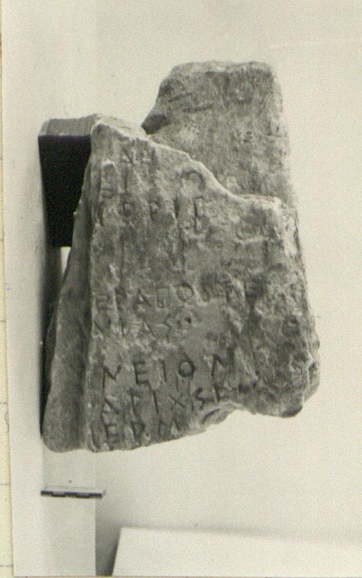 Description:   Inscribed fragment of a badly weathered stele.