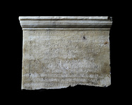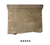 | Description: | Inscribed fragment from upper part of stele. Full width preserved; back very roughly picked. Face and edge of sides smooth. Lines 1,7 and the 21st., 22nd., and 23rd. letters of line 12 are all painted red, presumably as rubrics. This fits well in the text. Metronomoi. Pentelic marble. | |