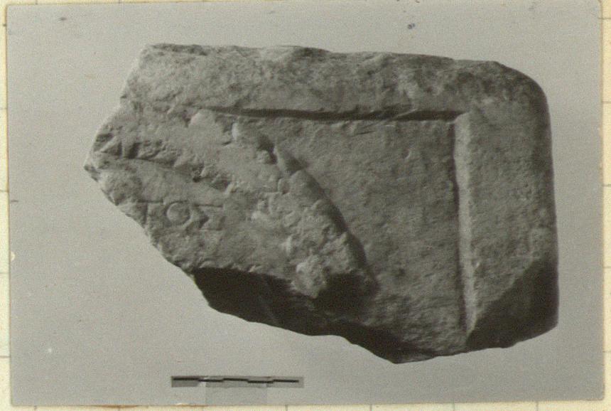 | Context: | Found built into late wall across apse of the Late Roman Building. | |