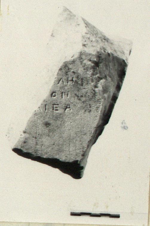 | Description: | Inscribed fragment. Broken all around. Only smooth front and rough picked back preserved. Hymettian marble. | |
