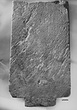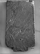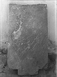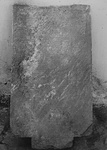 Dimensions:   H. ca. 0.81; Lett. H. 0.006; W. (at bottom) 0.465, (at preserved top) 0.436; Th. ca. 0.105, (near top) ca. 0.80