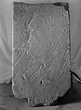 Sides dressed with toothed chisel. Back rough picked, but worn smooth near top where there is a shallow rut worn by wagon wheels. The stele formed part of a late Roman street paving. The front part of the stele is in very bad preservation as the marble is very crumbling.