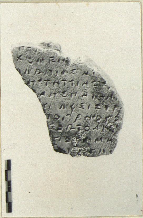 | Description: | Inscribed fragment. Broken on all sides and at back. Parts of ten lines of the inscription preserved; non-stoichedon. White marble. | |