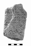 | Description: | Inscribed fragment. Broken at top, bottom, right and back. Preserved is left edge, rough picked. Parts of thirteen lines of the inscription preserved. Pentelic marble. | |