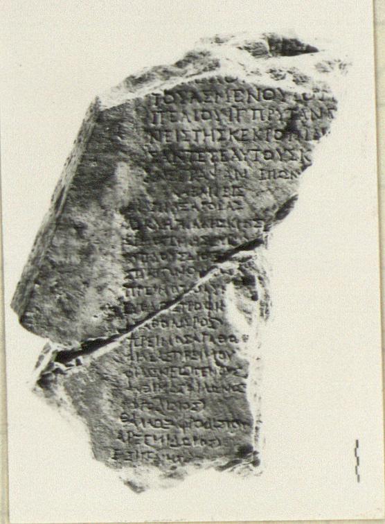 | Description: | Inscribed fragment. Mended from two pieces. Broken at top, bottom and right side. Left margin preserved. Back re-used. Parts of twenty-three lines of the inscription preserved. Hymettian marble. ADDENDA Part of I 7200 and I 7357. | |
