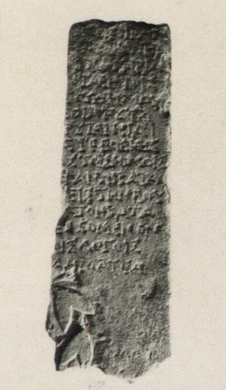 | Description: | Inscribed fragment. Broken above, below at left and at back. Fragment from the right edge of an inscribed block. Ca. sixteen lines of the inscription preserved. Part of a carved wreath below text. Pentelic marble. | |