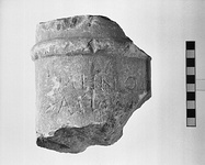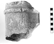 | Description: | Inscribed fragment of columnar grave monument. Upper part of the front half. Two lines of the inscription preserved, poorly cut. Hymettian marble. | |