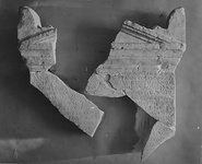 Description:   Two fragments from the upper part of a stele with pedimental top.