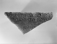 | Description: | Inscribed fragment. From the top of a block; the upper surface dressed smooth; sides, bottom and back broken. Inscribed in four lines. Pentelic marble. | |