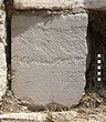 The left hand front corner and the right hand back corner of the block are broken away, and the right hand end of the inscribed face has been redressed, so that part of the inscription has been chiseled away.