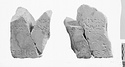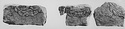 Dimensions:   H. a) 0.155, (as joined with I 3710) 0.16, b) 0.17, c) 0.385, (of small non-joining fragment) 0.22, d) 0.185, e) 0.147, f) 0.205, g) ca. 0.20, h) 0.20, i) 0.235, j) 0.16, k) 0.375, l) 0.22, m) 0.15, n) 0.22; Lett. H. a) 0.013, (as joined with I 3710, face A) 0.012-0.015, (as joined with I 3710, face B) 0.012, b) 0.013, c) 0.01, d) 0.013, e) 0.012, f) 0.013, h) 0.014, n) 0.013; W. a) 0.075, (as joined with I 3710) 0.133, b) 0.31, c) 0.202, (of small non-joining fragment) 0.225, d) 0.118, e) 0.28, f) 0.088, g) 0.65, h) 0.255, i) 0.18, j) 0.08, k) 0.46, l) 0.26, m) 0.32, n) 0.365; Th. a) 0.11, (as joined with I 3710) 0.175, b) 0.052, c) 0.095, (of small non-joining fragment) 0.07, d) 0.18, e) 0.09, f) 0.088, g) 0.08, h) 0.10, i) 0.095, j) 0.19, k) 0.18, l) 0.09, m) 0.085, n) 0.11