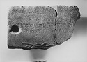 Another fragment joins at the left of those first found. Part of top surface preserved; otherwidse broken. Two lines of the inscription preserved.