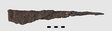 Adhering to side of light spearhead (IL 1059).
