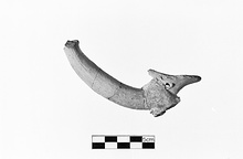| Description: | Attached to handle of standard measure. Band of lead wrapped around base of handle of scoop (?) (P 20,512), and stamped on the outside with magistrate 's seal, type of Dionysus of Alcamenes, seated right, as IL 701 and IL 1032. | |
