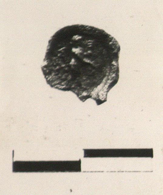 | Description: | Chip missing bottom left. A: Hermes standing nude, bearded, right, with caduceus held out in front. In field upper left, the letter sigma (Σ). B: plain. | |