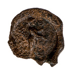 | Description: | Chip missing bottom left. A: Hermes standing nude, bearded, right, with caduceus held out in front. In field upper left, the letter sigma (Σ). B: plain. | |