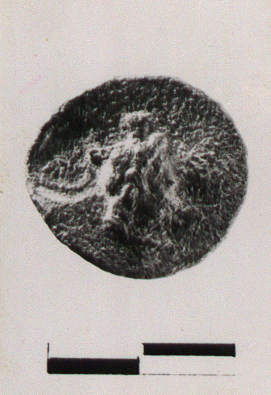 | Description: | A: bust of Athena, right, wearing helmet ? B: head of Serapis, right with countermark of palmette upper left. Cf. IL 417, for same type but with addition of countermark. | |