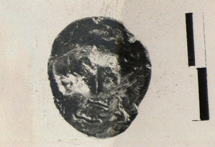 | Description: | A: lion 's head, left, in high relief, with tenon at right. Countermark of dolphin in outline below. B: plain. Cf. IL 218, for same type. | |