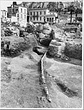 | Description: | First and best preserved section of water pipe from system found in place. Made of a sheet of lead folded to form a tube. The opening at one end is larger, for insertion of the connecting section of pipe. | |