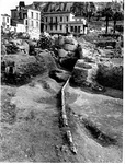 | Description: | First and best preserved section of water pipe from system found in place. Made of a sheet of lead folded to form a tube. The opening at one end is larger, for insertion of the connecting section of pipe. | |