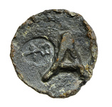 | Description: | Obverse: in relief, letter A and inset in low relief oval beside it, a winged caduceus. Reverse: very dull head of helmeted Athena. Cf. IL 57. | |