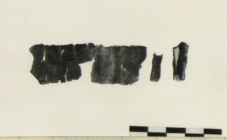 | Description: | Broken into six substantial and many smaller fragments. Originally rolled up in seven layers. Inscription on both sides. <graphic> | |