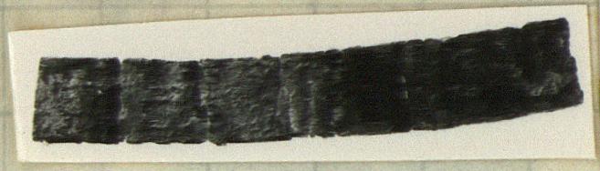 | Description: | Found rolled up in five. Broken in three pieces when unrolled. Inscription on both sides. <graphic> | |