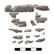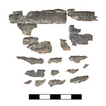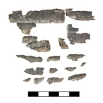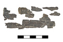 | Description: | Once rolled in a cylinder, now broken in three large fragments and about 20 tiny ones. Very fragile. Very thin strip of lead. Some faint writing discernible. | |