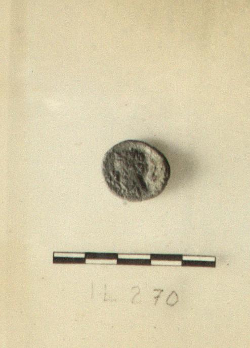 | Description: | Obverse : Head of Hermes, right, with caduceus. Counterstruck at right, dolphin. Reverse : Plain. Cf. IL 235, for type. | |