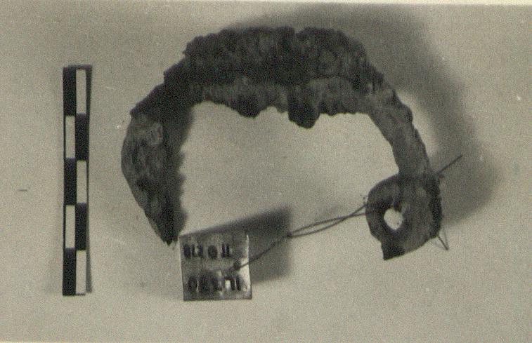 | Description: | Shaft and catch missing. Bow fibula with spring, much rusted. | |