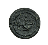| Description: | Obverse: Helios facing in quadriga, two horses to left, and two to right. All within border of dots. Reverse: plain. | |