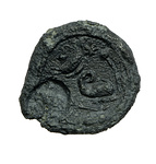 | Description: | Obverse: several objects including a dolphin at bottom, ear of wheat at left, at upper right a kantharos with bird (?) standing right in cup; star at top. Countermark of stork and lizard. All within border of dots. Reverse: plain. | |