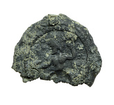 | Description: | Mended from two pieces. Obverse: Poseidon striding left over secondary impression; trident in upraised left hand; some other object held before him in right hand. Figure surrounded by beaded circle, interrupted by the secondary impression, the nature of which is uncertain. Reverse: standing draped figure with right arm raised to head. Much worn. | |