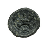 | Description: | Obverse: standing semi-draped Serapis, left, holding staff, right arm raised. Plant-like scroll on either side. All within border of dots. Reverse: Triton with attributes and stance of poseidon, left. Dolphin in right hand, trident in left. Countermark of stork and lizard below. Inscription: ΠΟCΕΙ. All within border of dots. <graphic> | |
