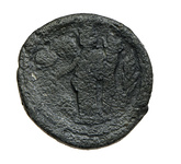 | Description: | Intact. Obverse: standing, draped female figure (Tyche?), front, with trees at her right, and a circular object in the field at her left. Reverse: youthful head profile left. Cf. IL 538, 539. ADDENDA: Reverse: Alexander the Great (Gkikaki July 2020). | |