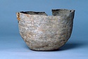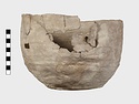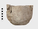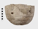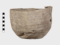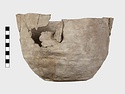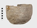 | Description: | Part of one side missing. The whole rather bent out of shape. Rather deep bucket with rounded bottom, and plain rim. Two attachments for a basket handle of iron. | |