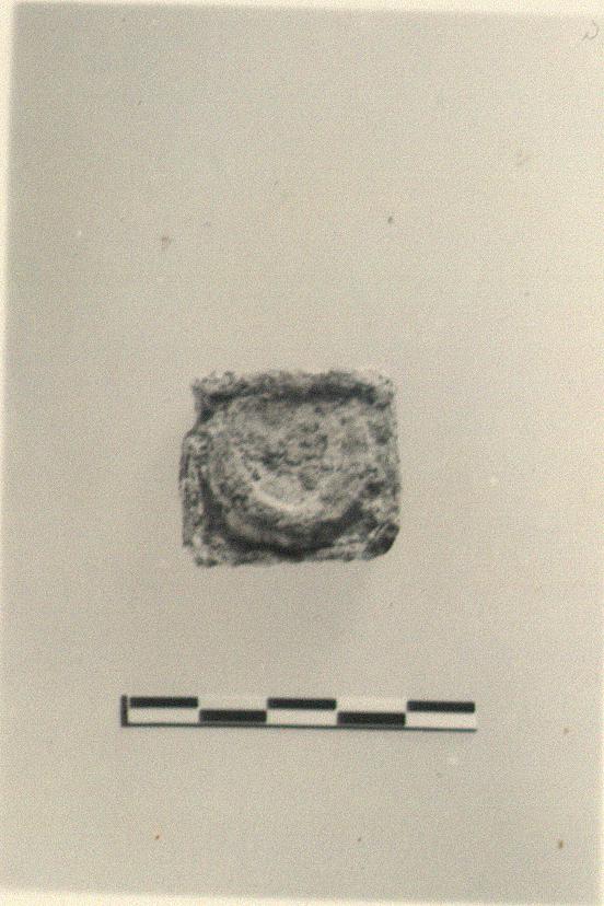 | Description: | Rectangular plinth with a dolphin (?) inside a raised border. | |