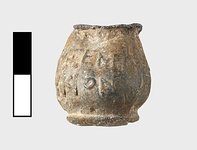 | Description: | Inscribed. Sack-sahped pot on a low raised bae, the rim flaring, but here chipped and betn. Letters in relief, incised in the mold : ΑΡΤΕΜΙΔΩΡΟΥ ΛΥΚΙΟΝ <graphic> | |