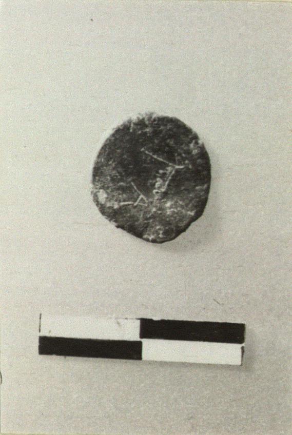 | Description: | Inscribed. A small very thin one. On one side the incised letters: Γ Α. | |
