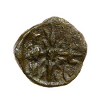 | Description: | Obverse: trident and thunderbolt, crossed, caduceus at left. In the corners, the letters: E P (Σ ?) M I Reverse: plain. Somewhat smaller than IL 922. Cf. IL 922, 924. | |